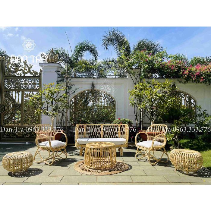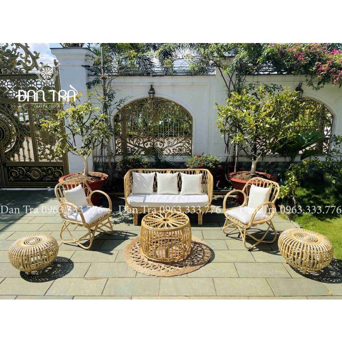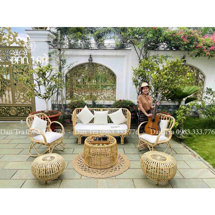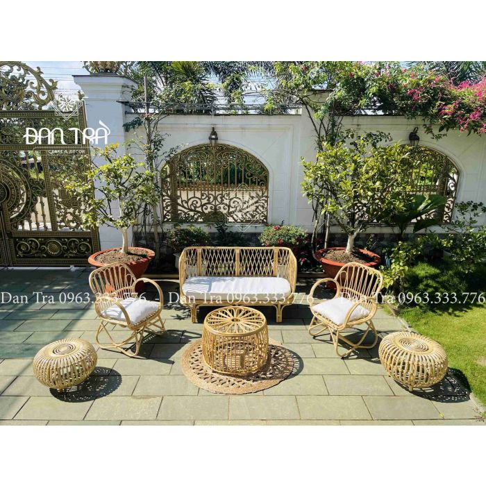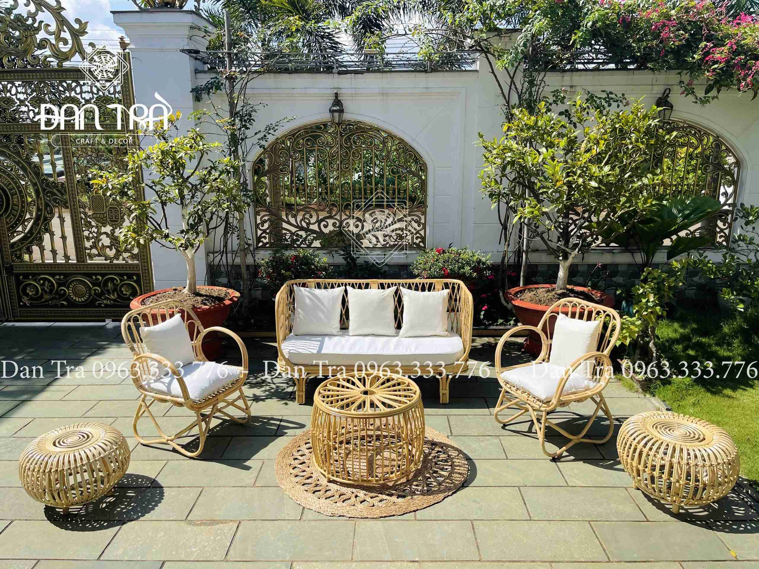 Full bộ bao gồm: 1 sofa, 2 ghế đơn, 1 bàn mây