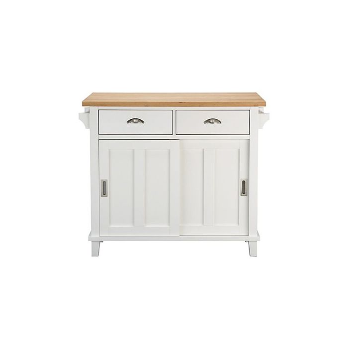 Thiết kế nhỏ gọn, 2 ngăn tủ cửa lùa, cùng hệ ngăn kéo, thanh treo khăn… giúp bàn đảo có thể phát huy công năng lưu trữ một cách tối đa.