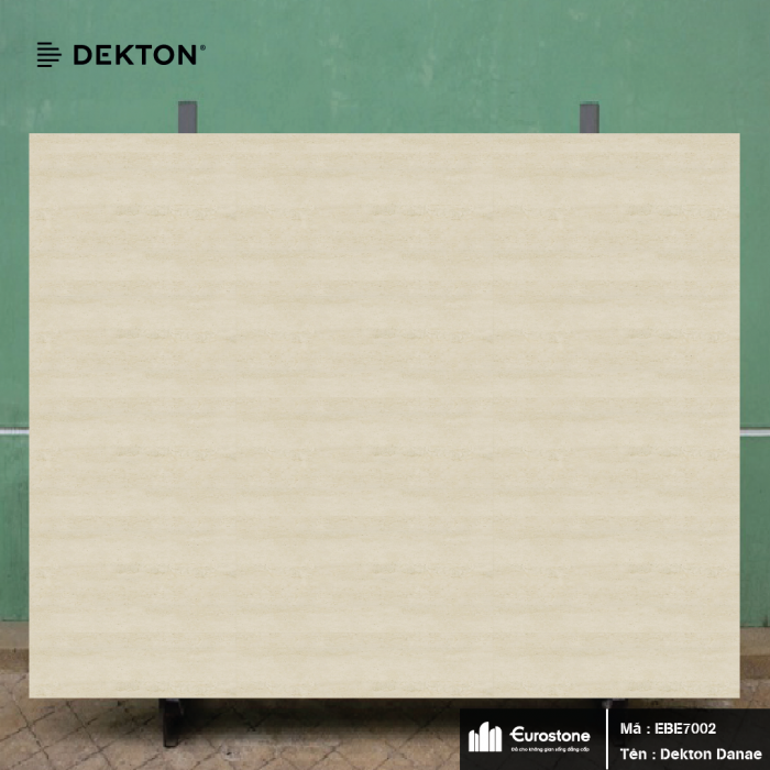- Mô tả chung: Đá Dekton Danae được lấy cảm hứng từ hình ảnh hạt cát nơi sa mạc. Danae được thiết kế trông giống như cát di chuyển trong sa mạc rộng lớn, các sắc thái khác nhau của màu be được phản chiếu dọc theo bề mặt tạo thành hiệu ứng vô cùng độc đáo và bắt mắt. Với gam màu trung tính Dekton Danae dễ kết hợp cho các công trình cổ điển hoặc công trình thương mại với nhiều hạng mục đặc biệt ốp tường các tòa nhà cao tầng.