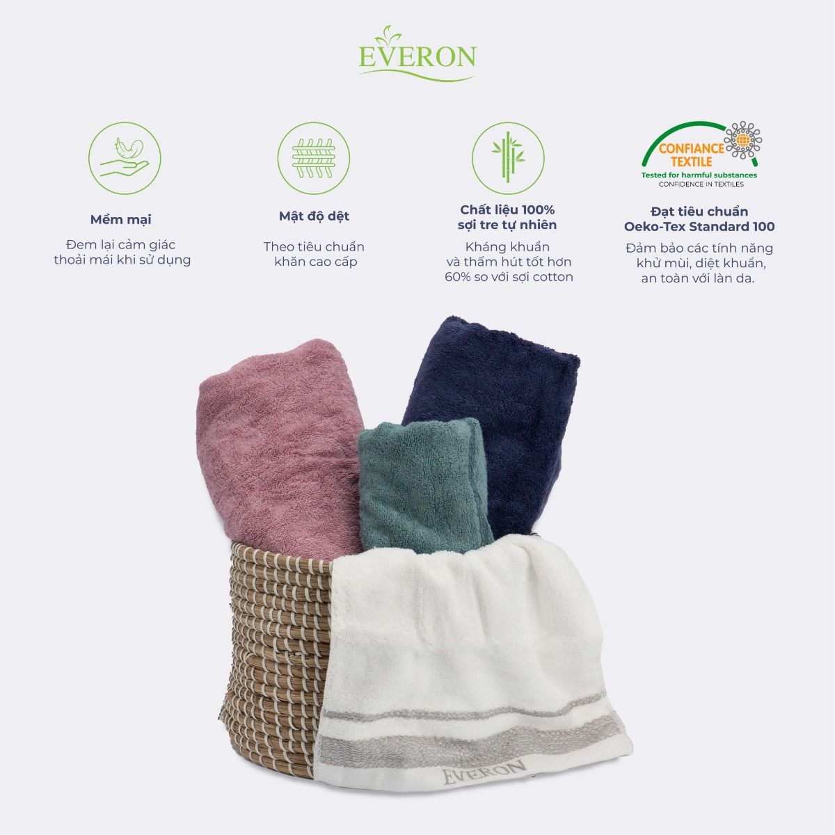 Dòng sản phẩm khăn cao cấp Everon với chất liệu 100% sợi tre tự nhiên mềm mại, kháng khuẩn và thấm hút tốt.