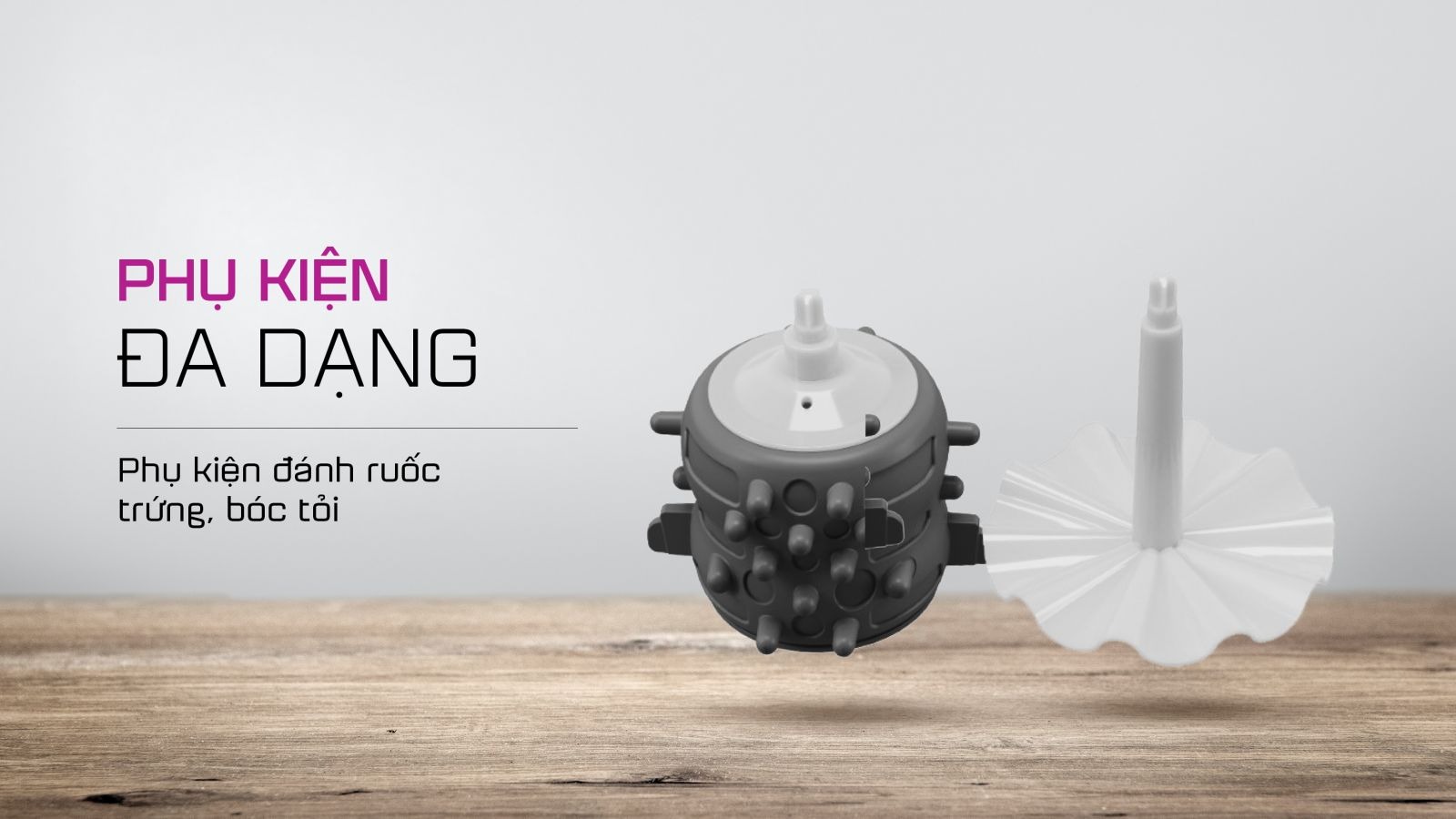Tích hợp dụng cụ đánh ruốc, đánh trứng và bóc tỏi tiện lợi: