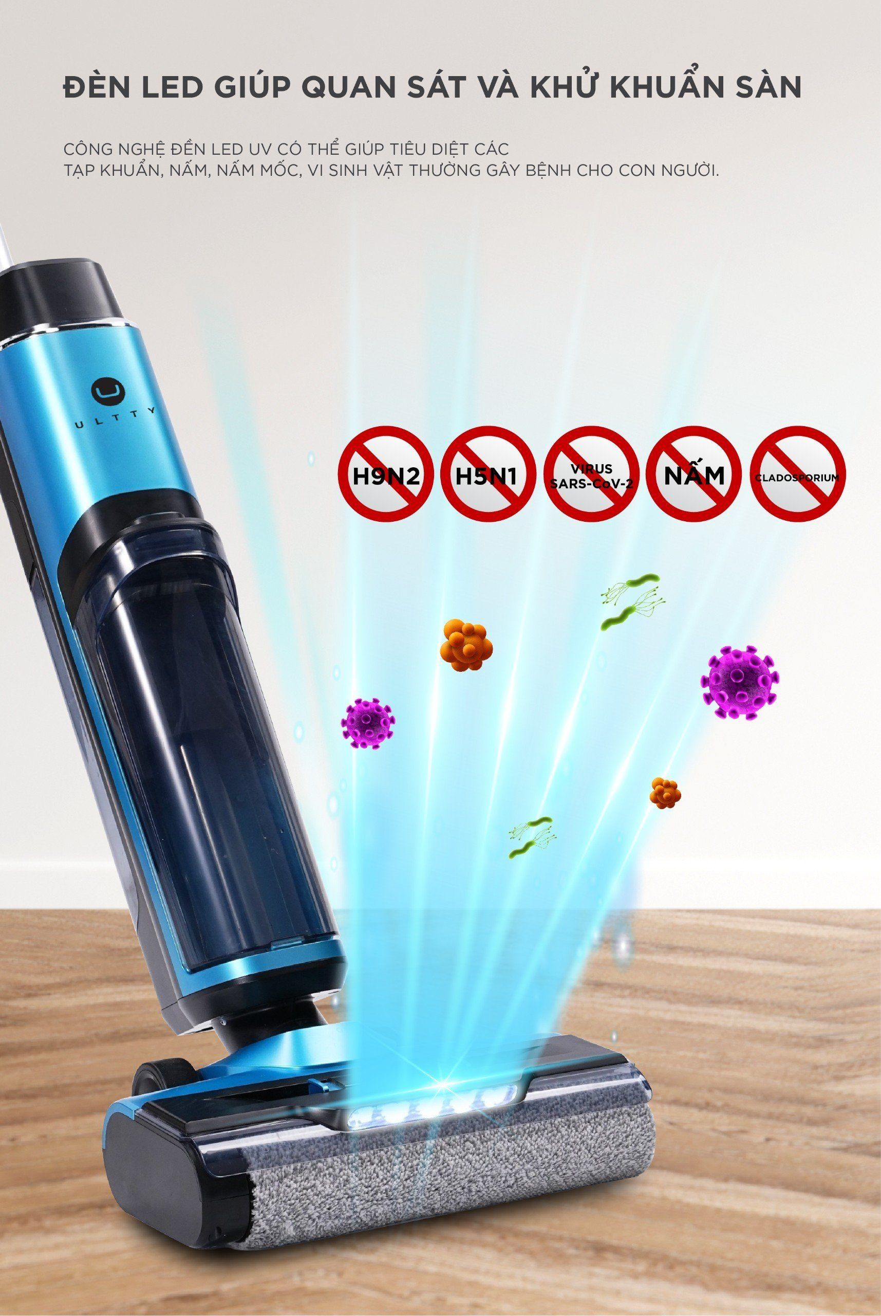 Đem lại không gian luôn sạch sẽ, diệt khuẩn 99,999% bằng nước điện phân organic và tia UVC , U Ultty SCW18 cho phép hiệu suất làm việc lý tưởng trên sàn cứng như phòng khách, nhà bếp, phòng tắm, v.v. đem lại không gian luôn sạch sẽ, tươi mới cho ngôi nhà. ULTTY SCW18 chắc chắn là lựa chọn hàng đầu cho những ai đang tìm kiếm một máy hút bụi cầm tay tiên tiến, hiện đại.