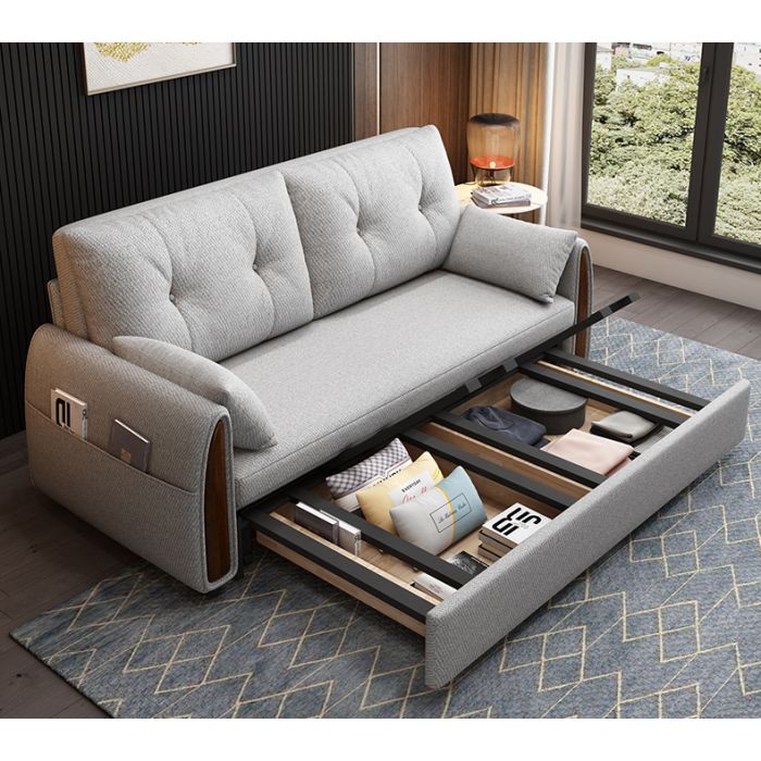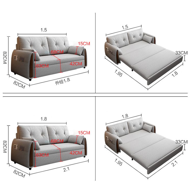 Kích thước khi thu gọn thành sofa D150/180/210*C82*R82(cm) phủ bì, chiều dài lòng ghế 120/150/180(m) - Chuyển thành giường rộng 195(cm), cao của thành giường 33(cm)