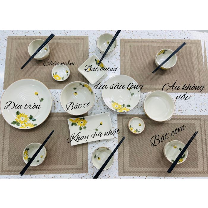 | Tên Sản Phẩm | Bộ bát đĩa hoa cúc vàng - Set 14 món |