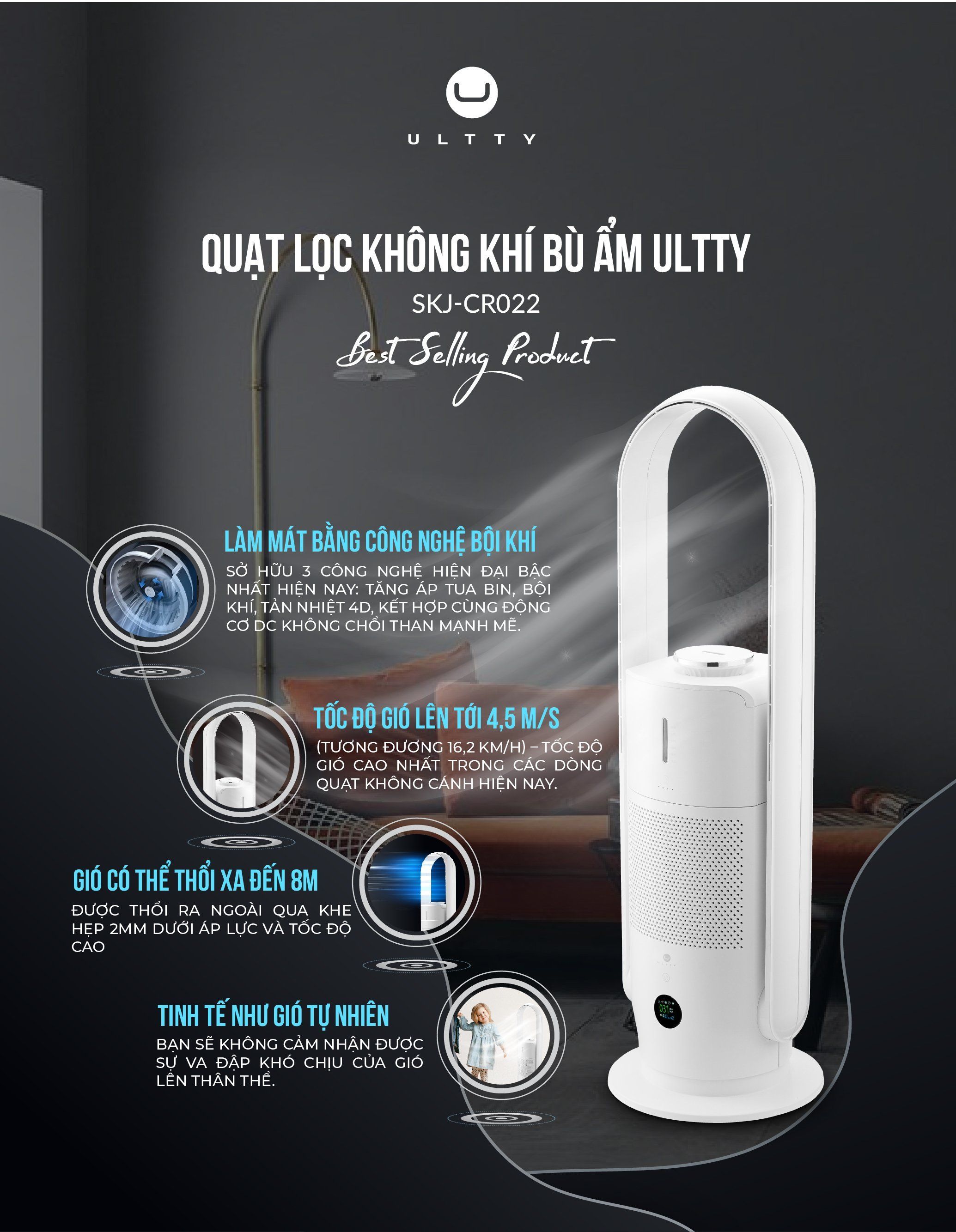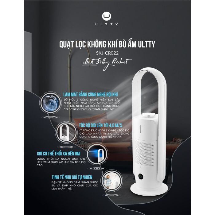 Có quạt lọc không khí bù ẩm Ultty, không gian nhà bạn sẽ luôn luôn mát mẻ, trong lành và thoáng đãng. Cùng Ultty tận hưởng cuộc sống 5 sao đích thực!