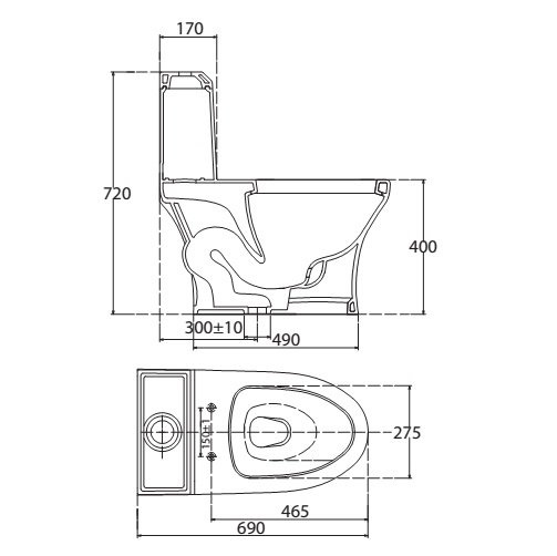 - Bàn cầu một khối, dễ dàng vệ sinh và ngăn bám bẩn