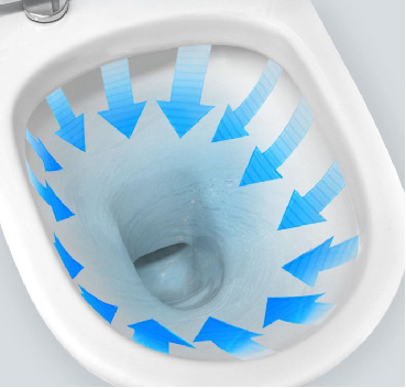 Công nghệ xả Rain Flush giúp dòng nước xả phân phối đều toàn bộ lòng bàn cầu và làm giảm bắn nước, giảm tiếng ồn hiệu quả.