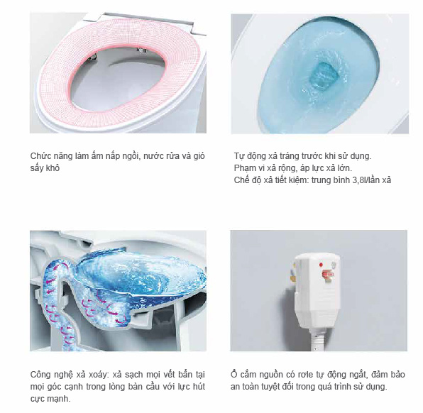- Chức năng làm ấm nắp ngồi, làm ấm nước rửa