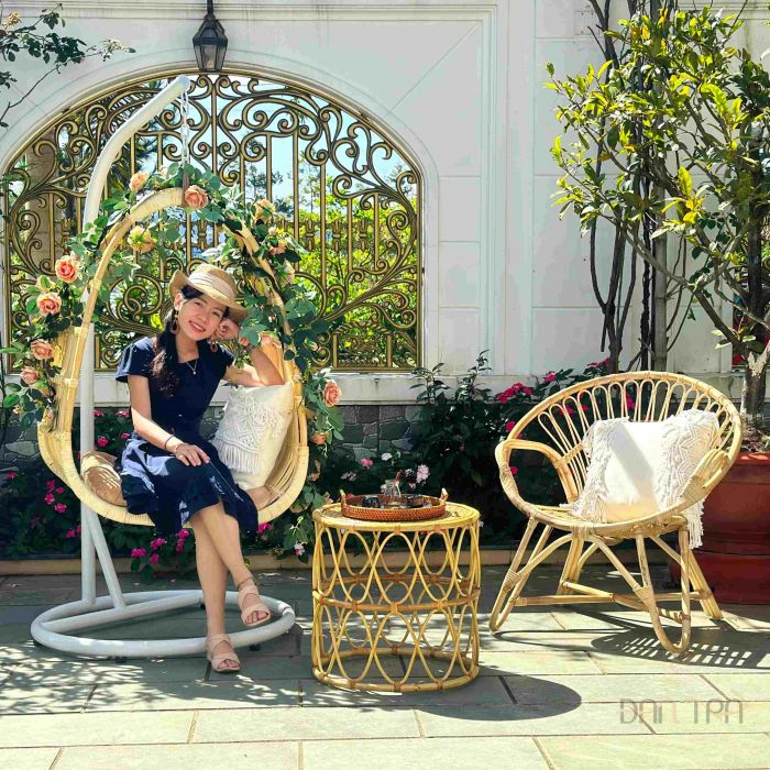 Thiết kế: Xích đu mây đan hoạ tiết đơn giản, nhẹ nhàng chỉ có tại Mây Tre Đan Trà.
