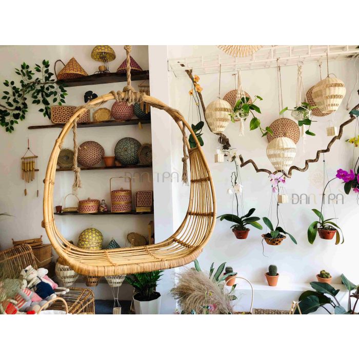 Lướt qua không trung trên chiếc ghế xích đu mây (ghế treo mây) này với đệm ngồi thoải mái khi bạn tận hưởng bình minh, hoàng hôn hay đơn giản là một cuốn sách hay. Chiếc ghế treo bằng mây có tone màu mây tự nhiên này chắc chắn sẽ là tâm điểm của bất kỳ thiết kế trang trí nhà nào. Với những ai theo đuổi phong cách decor nhà mộc mạc & ôn hoà nhưng không kém phần năng động, mong muốn mang thiên nhiên vào không gian sống của mình nhưng vẫn có tính độc đáo thì xích đu mây tre là một sự lựa không thể bỏ qua.