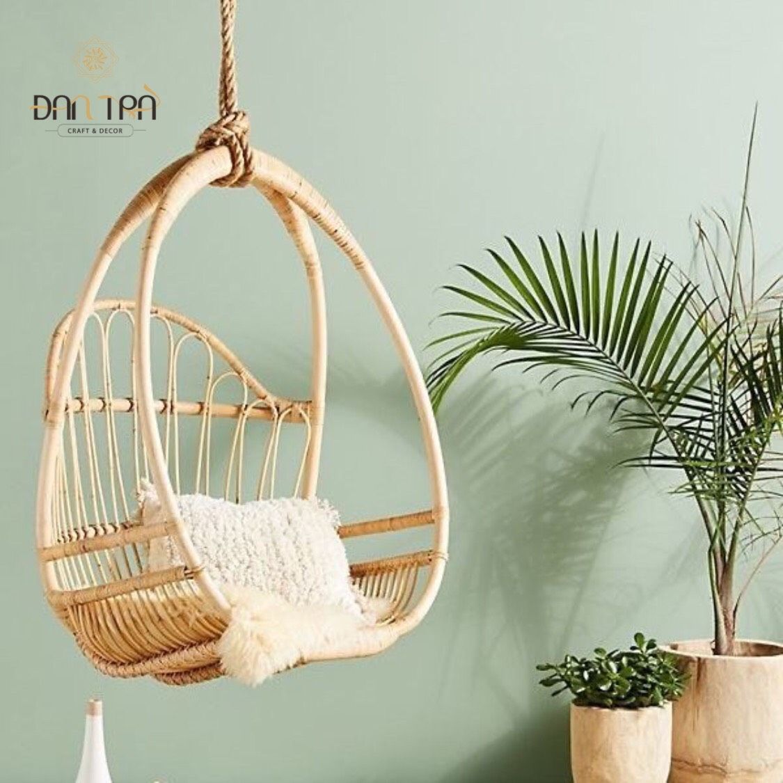 Lướt qua không trung trên chiếc ghế xích đu mây (ghế treo mây) này với đệm ngồi thoải mái khi bạn tận hưởng bình minh, hoàng hôn hay đơn giản là một cuốn sách hay. Chiếc ghế treo bằng mây có tone màu mây tự nhiên này chắc chắn sẽ là tâm điểm của bất kỳ thiết kế trang trí nhà nào. Với những ai theo đuổi phong cách decor nhà mộc mạc & ôn hoà nhưng không kém phần năng động, mong muốn mang thiên nhiên vào không gian sống của mình nhưng vẫn có tính độc đáo thì xích đu mây tre là một sự lựa không thể bỏ qua.