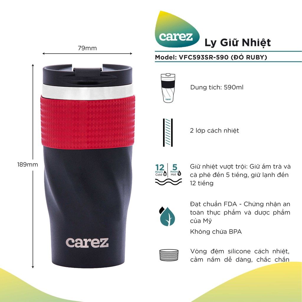 | Tên Sản Phẩm | Ly Giữ Nhiệt CAREZ TO GO 590ML VFC593SR-590 màu đỏ ruby |
