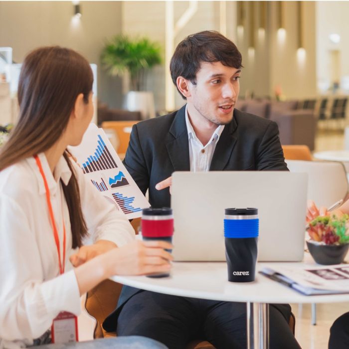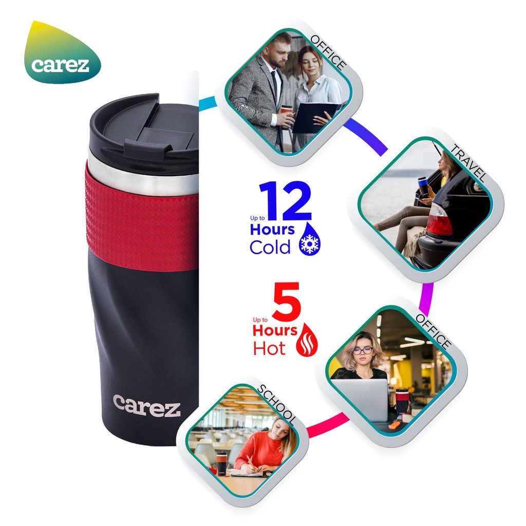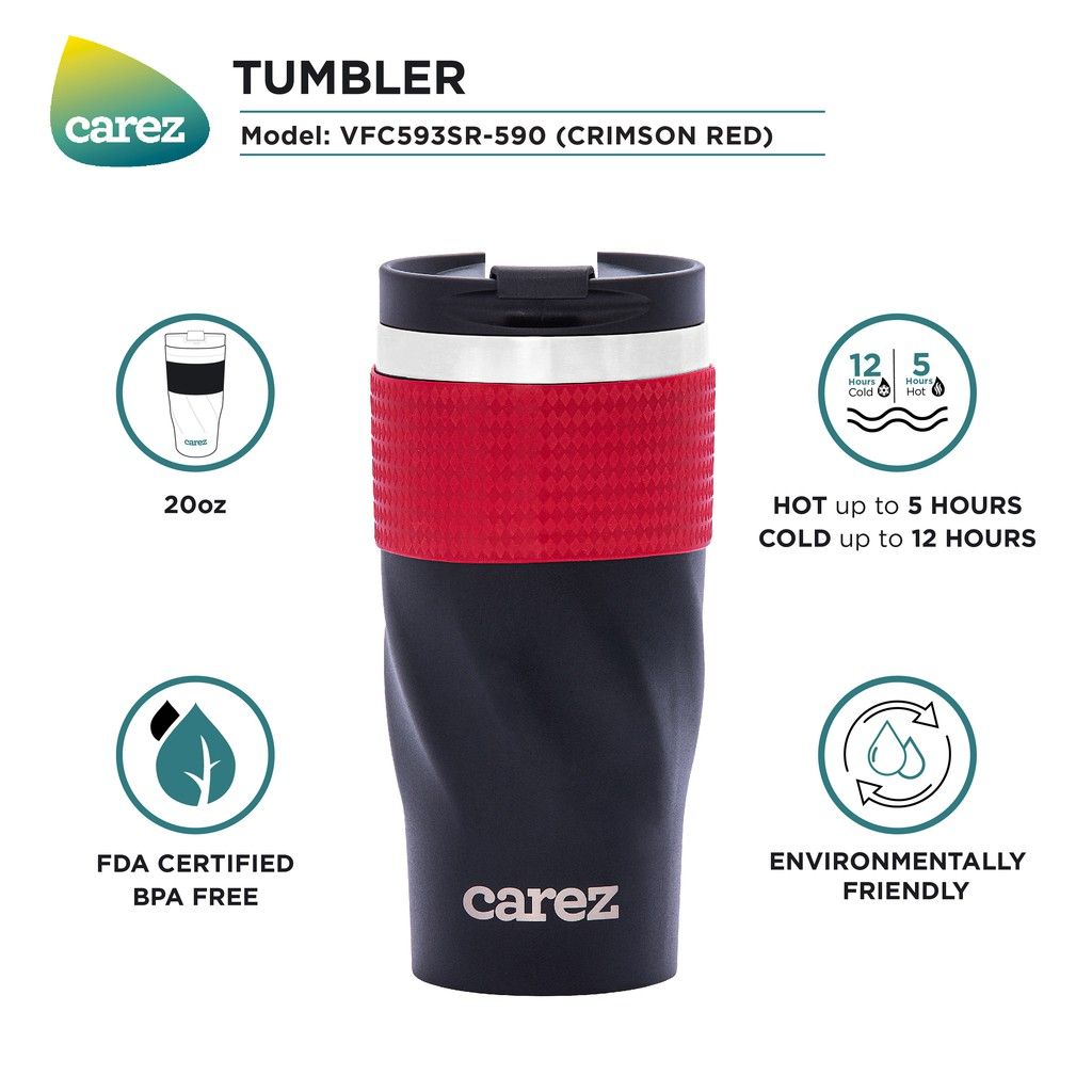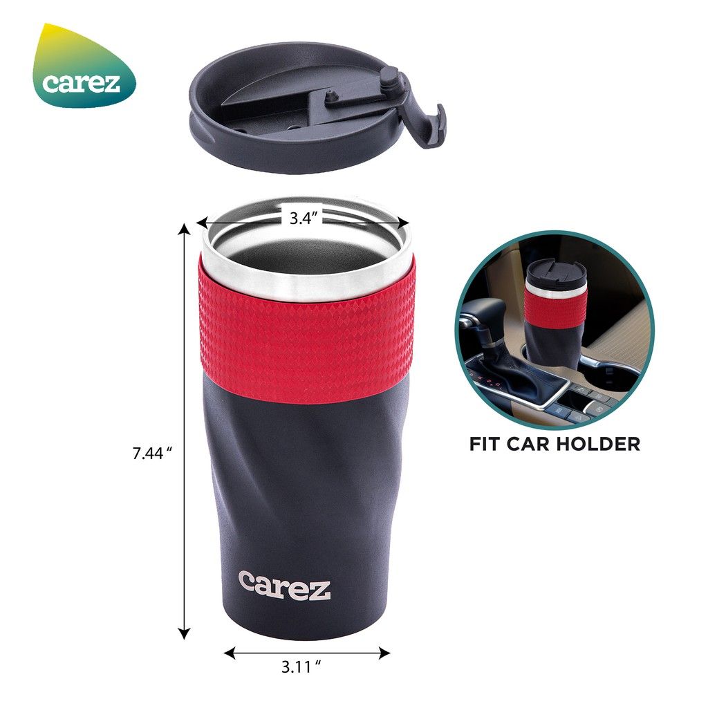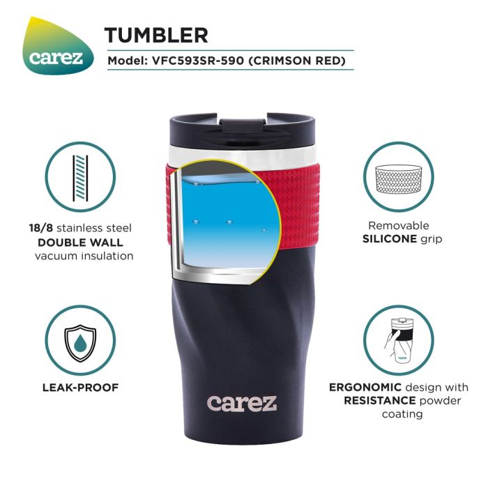 - Ly giữ nhiệt Carez model VFC593SR-590 màu đen tinh tế, phối cùng màu đỏ ruby nổi bật đem đến sự trẻ trung.