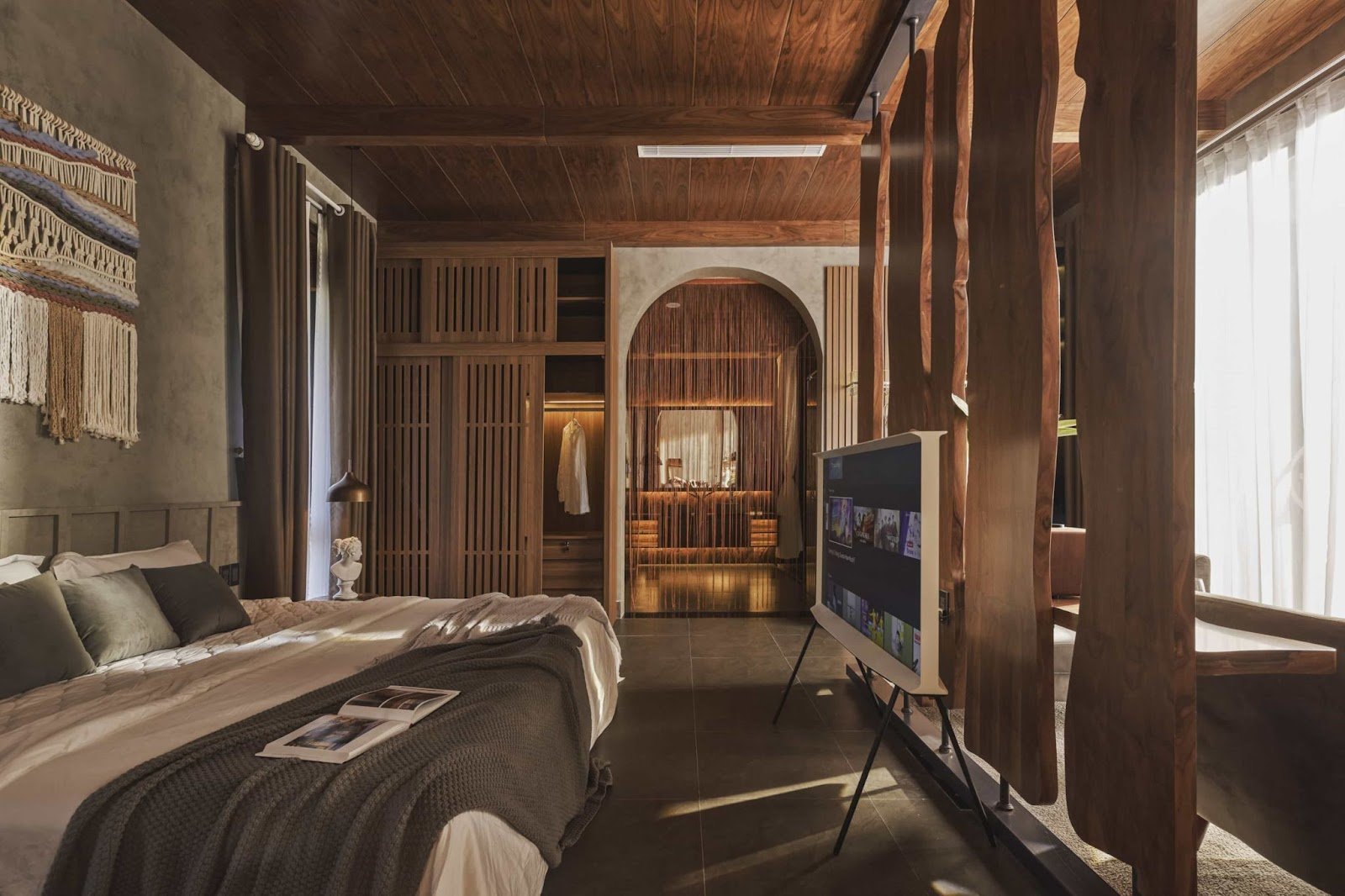 Khi ánh sáng và các chất liệu tự nhiên cùng hiện diện, cảm xúc trong căn phòng cũng trở nên sâu sắc hơn (Ảnh: Cát Mộc Group)