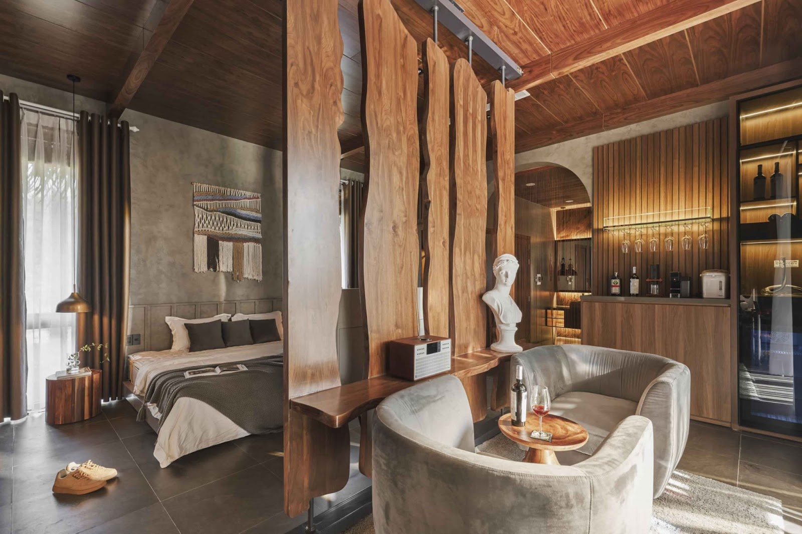 Chất liệu mộc mạc ấm áp tạo nên trải nghiệm nghỉ dưỡng đúng nghĩa “chậm để sâu sắc” (Ảnh: Cát Mộc Group)
