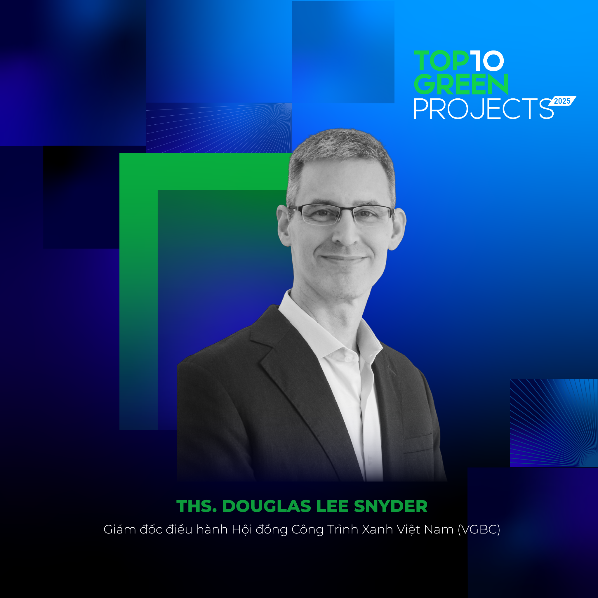 ThS. Douglas Lee Snyder hiện đảm nhiệm vai trò Giám đốc Điều hành Hội đồng Công trình Xanh Việt Nam (VGBC), nơi ông đóng góp tích cực vào việc thúc đẩy phát triển xây dựng bền vững thông qua hợp tác chiến lược và tư vấn kỹ thuật chuyên sâu. Với hơn 25 năm kinh nghiệm trong lĩnh vực công trình xanh, ông đã tham gia nhiều dự án về tiết kiệm năng lượng tại Mỹ và Đông Nam Á, trải dài từ công trình công cộng, giáo dục, y tế đến thương mại, công nghiệp và dân dụng.