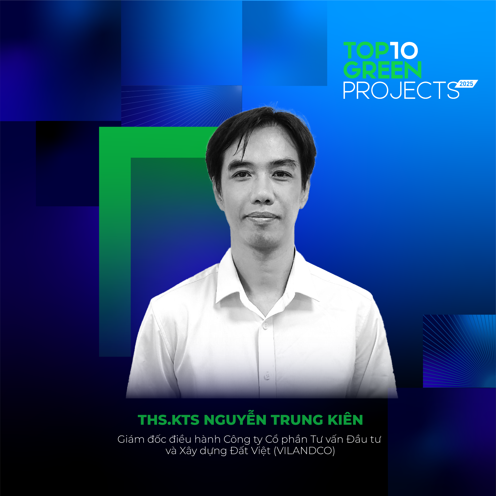 ThS.KTS Nguyễn Trung Kiên tốt nghiệp ngành Kiến trúc tại Đại học Kiến trúc Hà Nội (2001), sau đó tiếp tục hoàn thiện chuyên môn với bằng Thạc sĩ Quản lý kiến trúc tại London South Bank University (Vương quốc Anh). Với hơn hai thập kỷ làm việc trong lĩnh vực kiến trúc – xây dựng và hơn 15 năm theo đuổi hướng phát triển công trình xanh, hiệu quả năng lượng, ông Kiên là một trong những chuyên gia tiên phong tại Việt Nam trong lĩnh vực này.