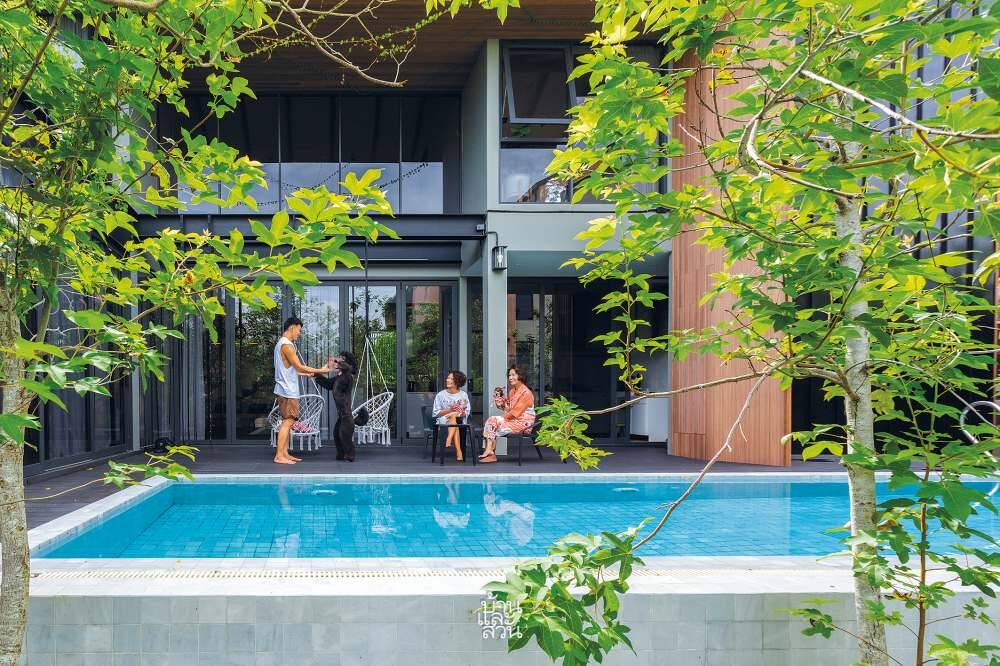 - Thiết kế không gian mở, sử dụng nhiều cửa kính lớn, liên kết giữa không gian trong nhà và ngoài trời.