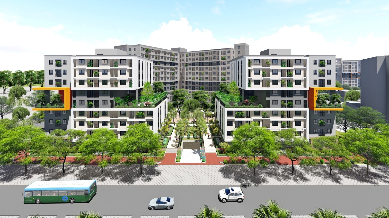 • Quy mô: 3 tòa nhà cao 12 tầng (1 tum), tổng diện tích sàn 109.400m², cung cấp 1.100 căn hộ cho khoảng 3.900 cư dân.