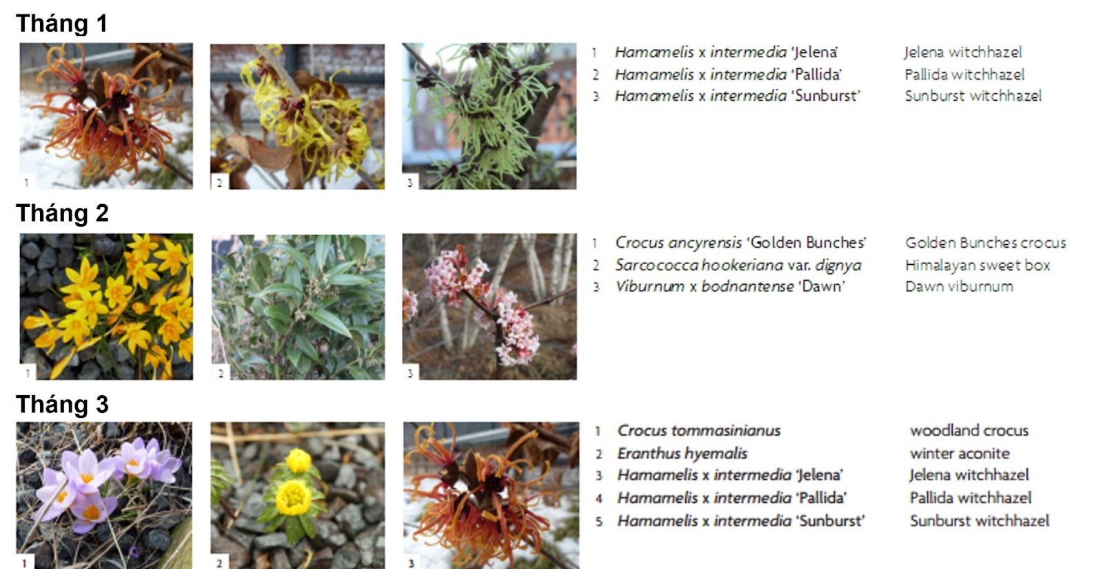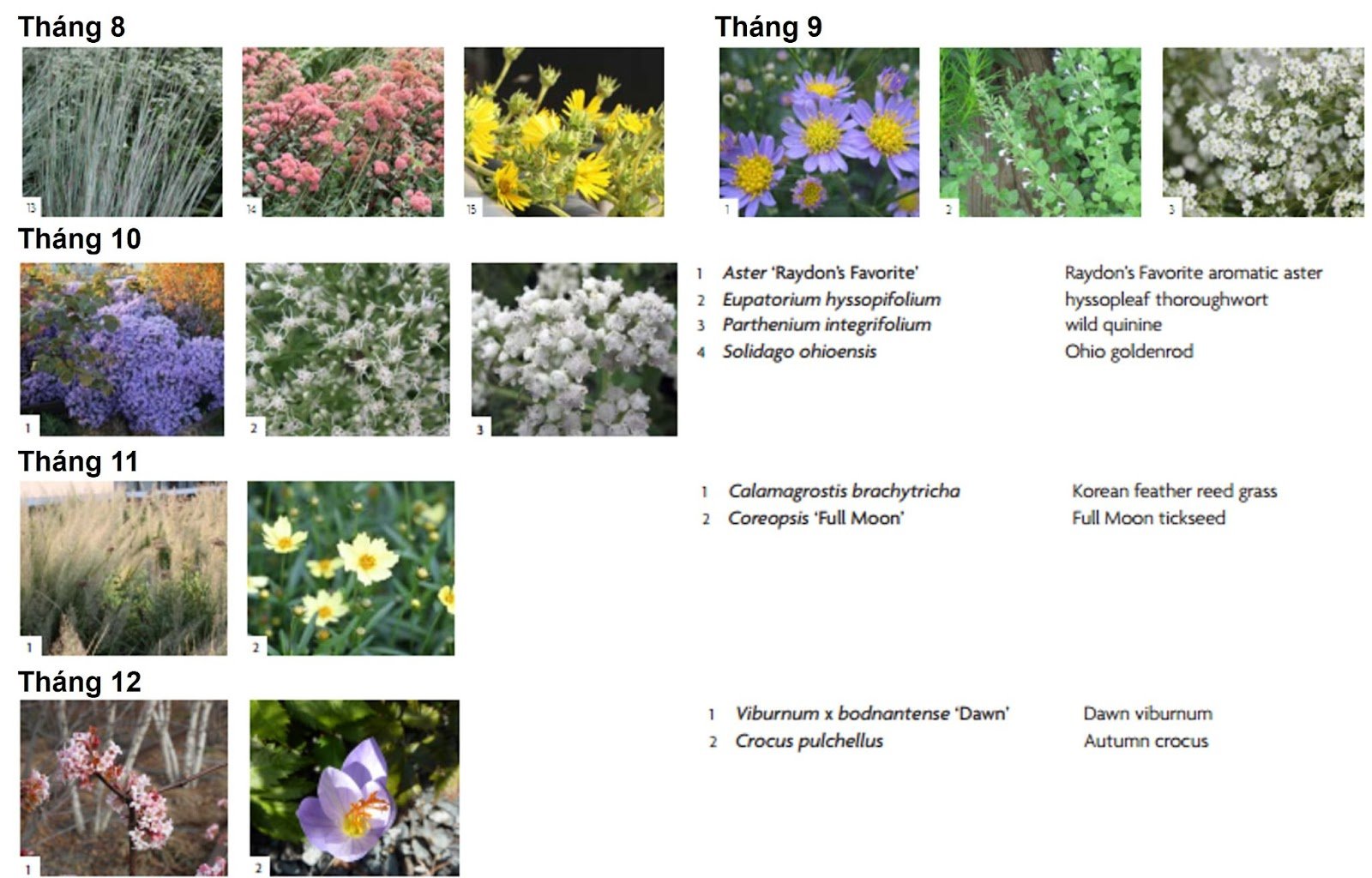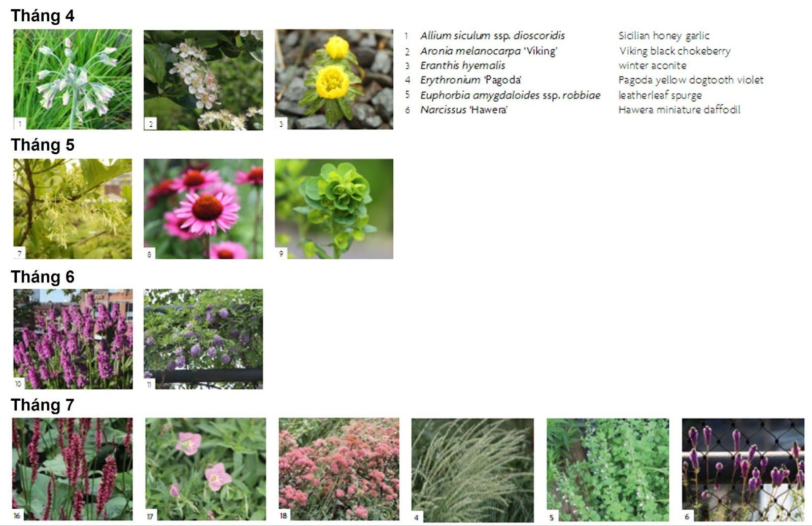 Ví dụ một số loại hoa nở vào từng tháng trong năm ở High Line