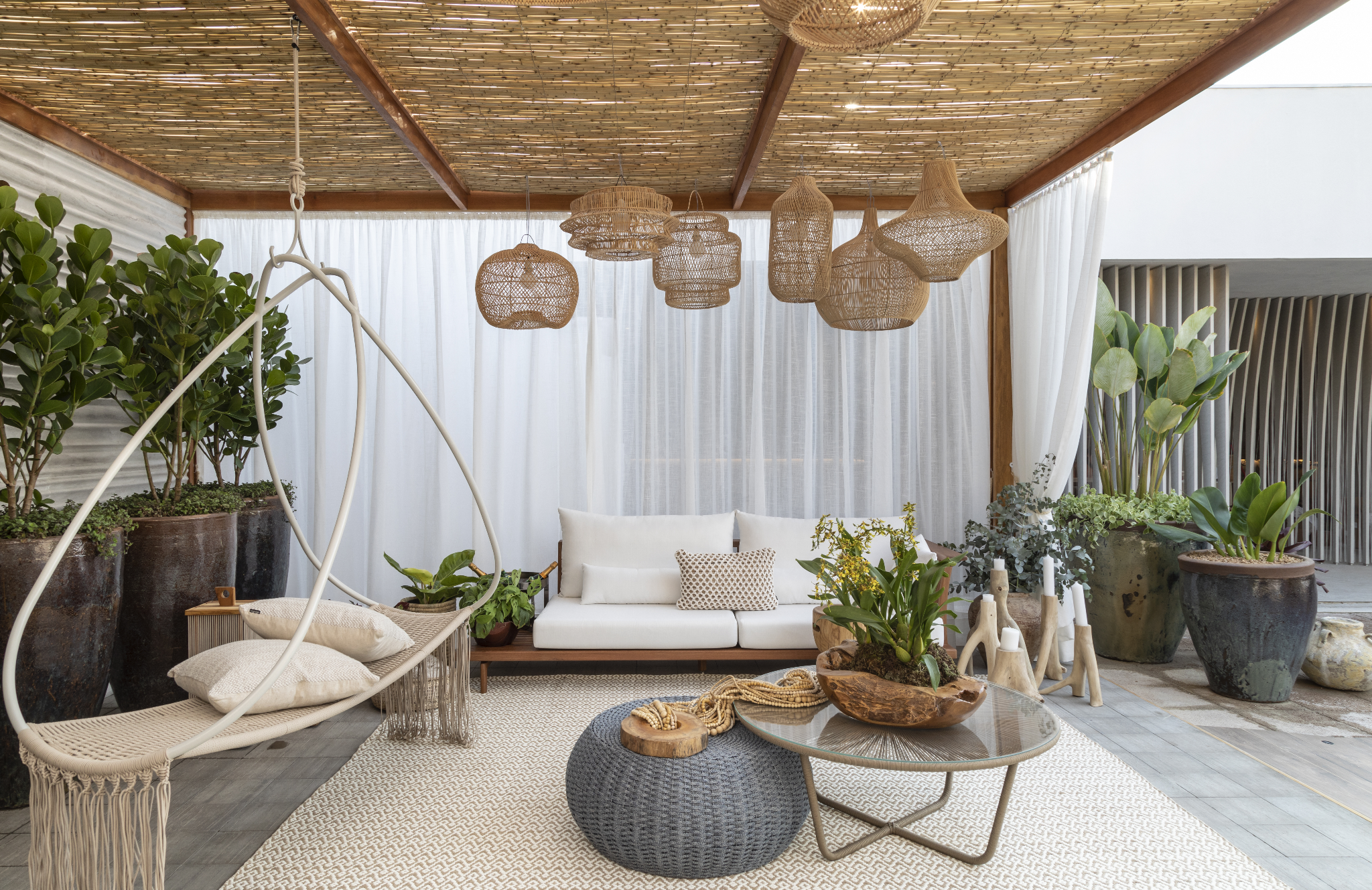 Đây là lúc các vật liệu đan thủ công như cói, mây, tre phát huy vai trò kiến trúc của mình. Các tấm bình phong hay vách ngăn bằng cói đan là một giải pháp phân chia lý tưởng. Chúng phân định không gian một cách ước lệ, vừa phân chia không gian vừa tạo ra điểm nhấn thẩm mỹ, mà không hề cản trở luồng lưu thông của không khí và ánh sáng.