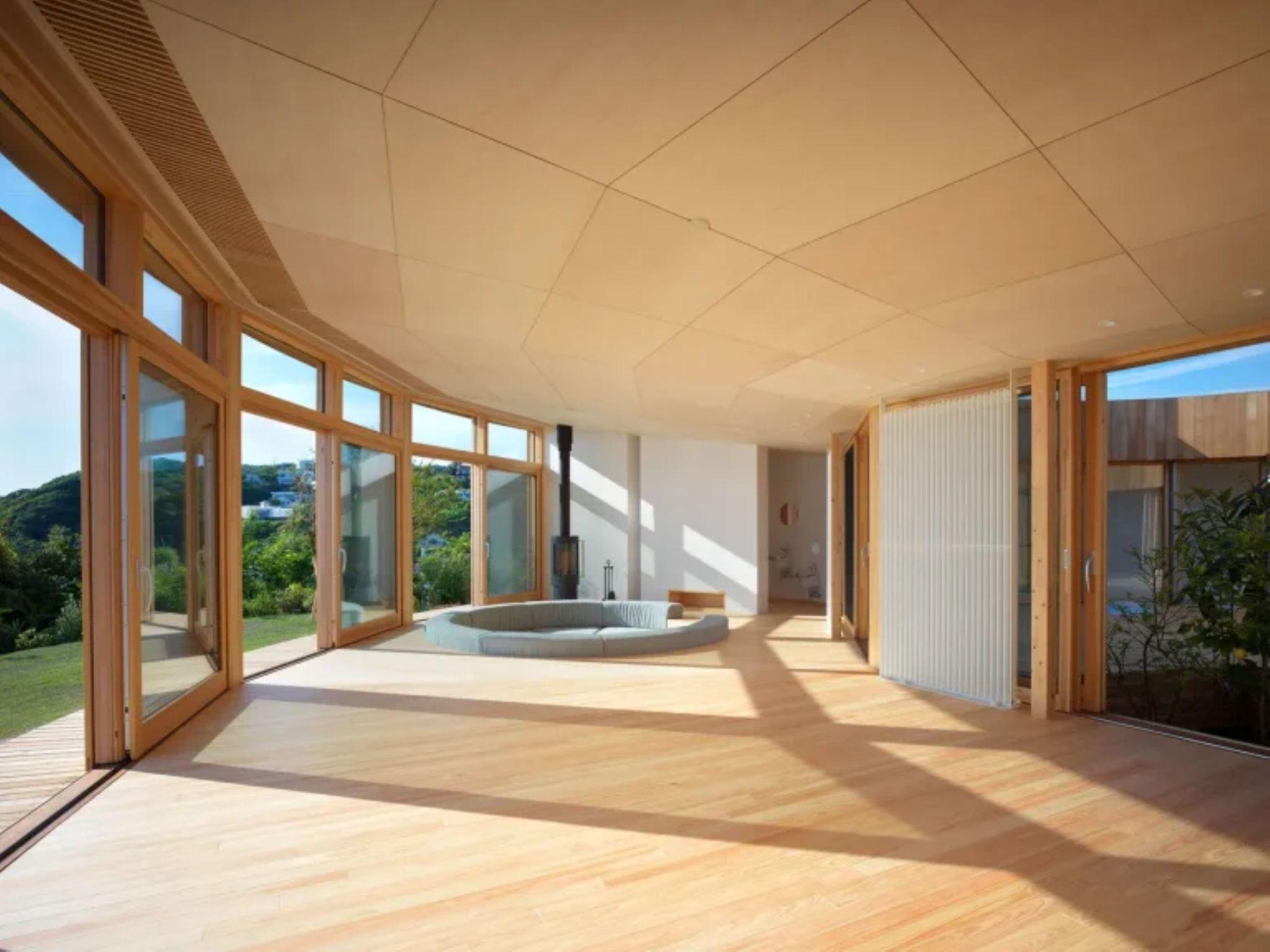 Ngôi nhà 365° tại Nhật Bản do A.H. Architects thiết kế là ví dụ tiêu biểu của nhà ở ưa sinh học, với mái vòm kính mở tầm nhìn 360° ra rừng thông xung quanh. Công trình sử dụng gỗ, bê tông trần và thông gió thụ động để hòa nhập thiên nhiên và tạo tiện nghi tự nhiên