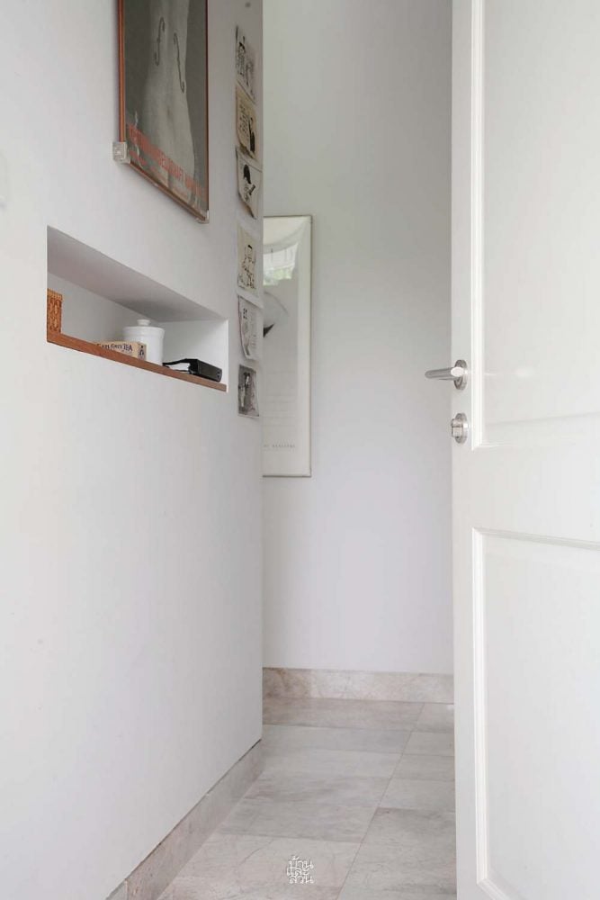 Hốc tường nhỏ gần lối vào được tận dụng làm kệ để chìa khóa, ví và vật dụng cá nhân, giúp hạn chế quên đồ khi ra khỏi nhà. Thiết kế tối giản nhưng mang lại sự tiện lợi rõ rệt trong sinh hoạt hằng ngày.