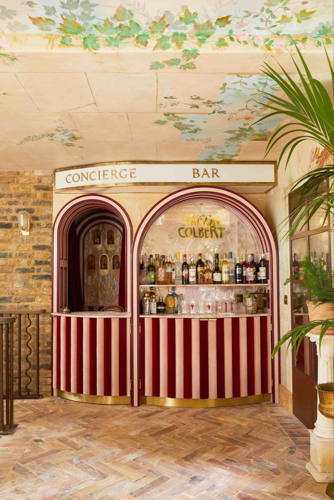 Một bức bích họa dây leo uốn lượn giúp không gian quầy bar thêm phần lãng mạn